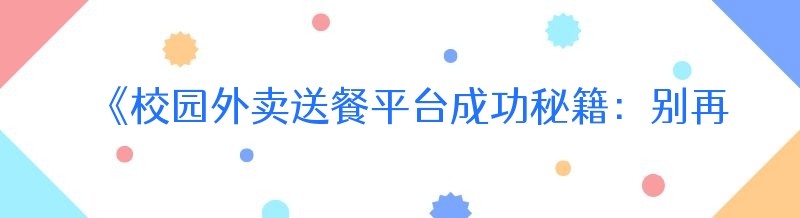 《校园外卖送餐平台成功秘籍:别再走错第一步》