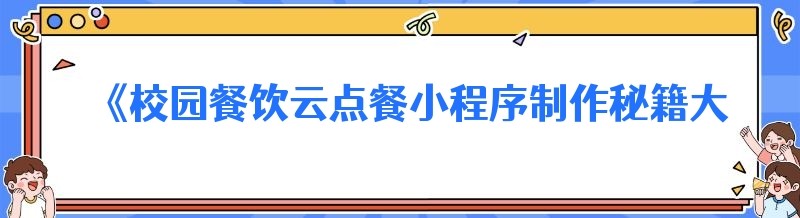 《校园餐饮云点餐小程序制作秘籍大公开,你知道吗?》
