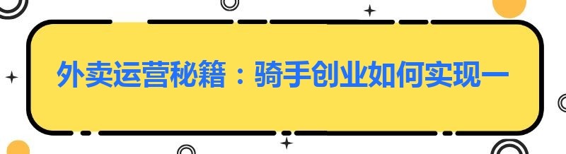 外卖运营秘籍:骑手创业如何实现一个月回本?