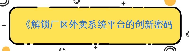 《解锁厂区外卖系统平台的创新密码》