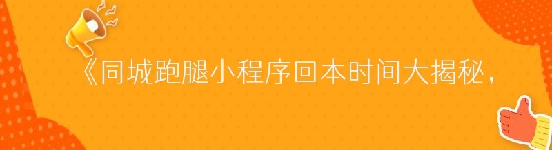 《同城跑腿小程序回本时间大揭秘,你真的了解吗?》