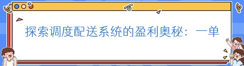 在当今竞争激烈的商业环境中,调度配送系统作为连接商家与消费者的重要桥梁,其盈利模式备受关注。对于许多从事配送行业的人来说,最关心的问题之一就是:调度配送系统一单能有多少钱?今天,我们就来深入探讨这个话题,为你揭开其中的神秘面纱。