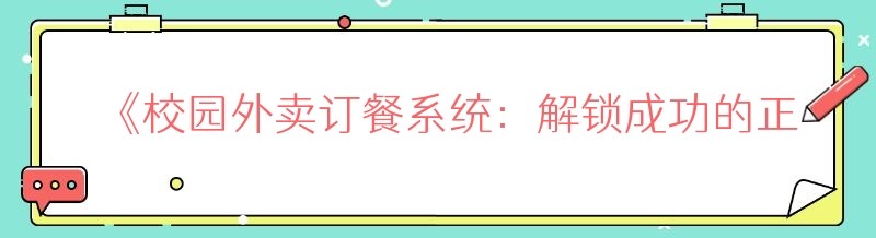 - 《校园聚合外卖平台筹备指南:开启校园美食新征程》