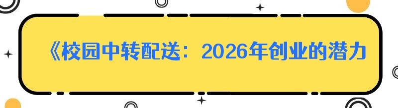 《校园中转配送:2026年创业的潜力新机遇》