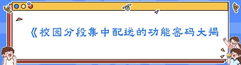 《校园分段集中配送的功能密码大揭秘》
