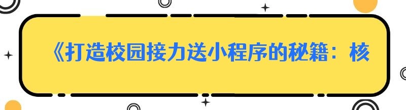 《打造校园接力送小程序的秘籍:核心策略大揭秘》