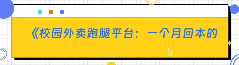 《校园外卖跑腿平台:一个月回本的财富密码》