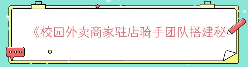 《校园外卖商家驻店骑手团队搭建秘籍,你不可不知!》