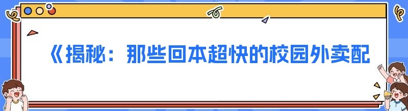 《揭秘:那些回本超快的校园外卖配送平台》