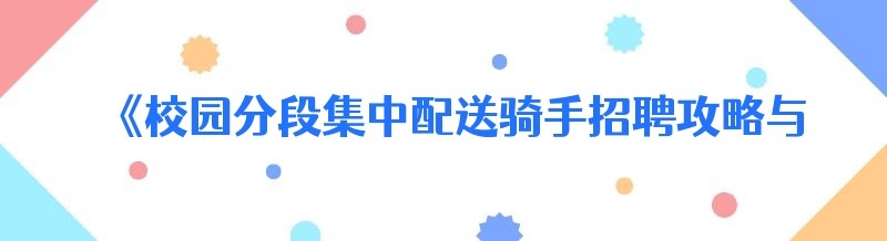 在校园外卖和跑腿服务日益兴盛的今天,校园分段集中配送模式因其高效、便捷的特点受到了广泛关注。然而,如何招聘到合适的骑手成为了许多校园外卖平台面临的重要问题。