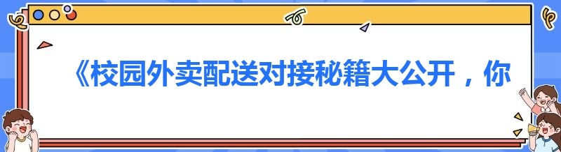 《校园外卖配送对接秘籍大公开,你知道吗?》
