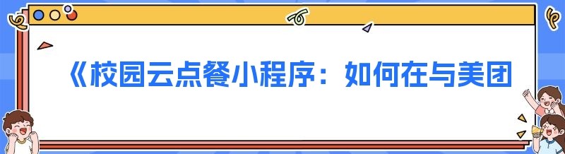 《校园云点餐小程序:如何在与美团饿了么的竞争中脱颖而出》