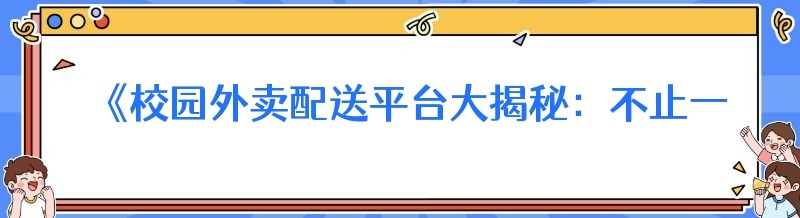 - 《校园外卖点餐系统选择秘籍大公开!》