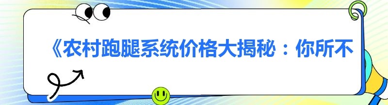 《农村跑腿系统价格大揭秘:你所不知道的那些事儿》