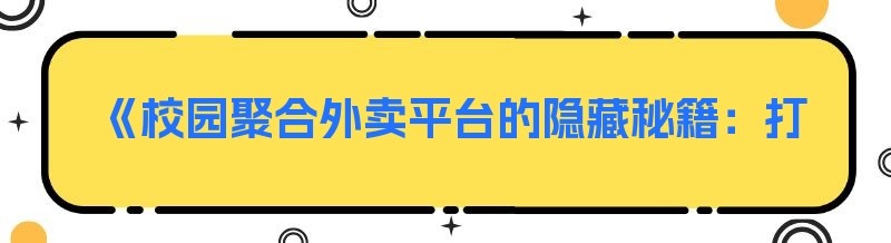 《校园聚合外卖平台的隐藏秘籍:打造独特优势》