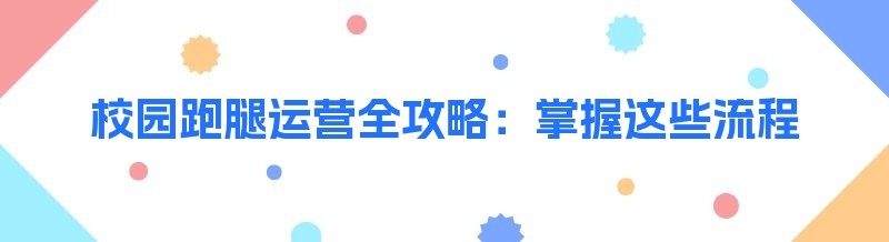 校园跑腿运营全攻略:掌握这些流程,开启成功之路