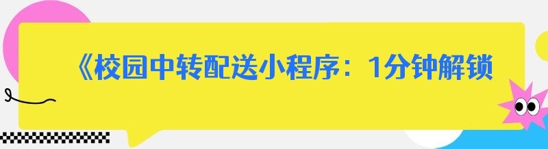 《校园中转配送小程序:1分钟解锁的秘密》