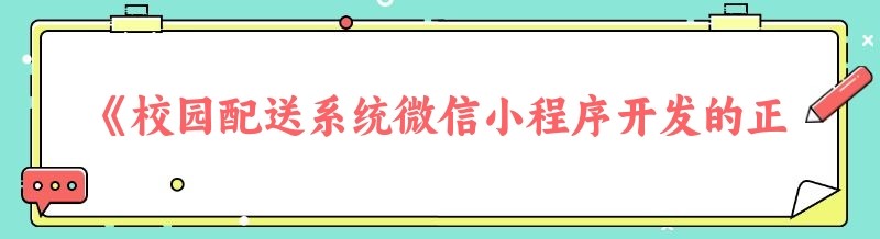 《校园配送系统微信小程序开发的正确打开方式》