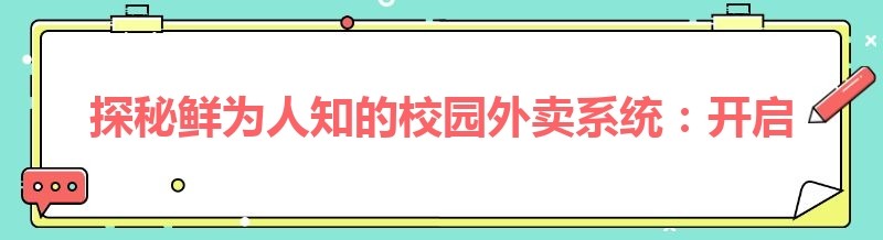 探秘鲜为人知的校园外卖系统:开启便捷校园生活新篇章