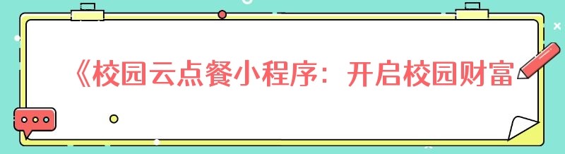《校园云点餐小程序:开启校园财富密码的神奇钥匙》