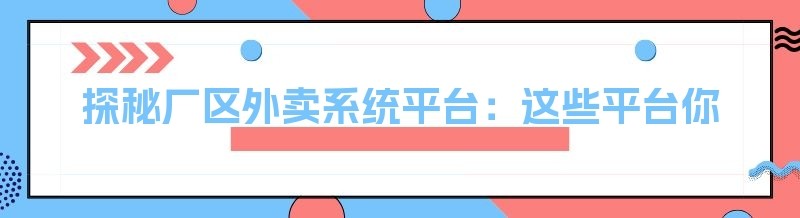探秘厂区外卖系统平台:这些平台你一定要知道