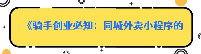 《骑手创业必知:同城外卖小程序的那些事儿》