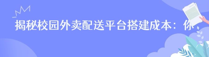 在校园这个充满活力与商机的市场中,外卖配送平台正逐渐成为学生们日常生活中不可或缺的一部分。许多有创业想法的人都对搭建一个学校外卖配送平台跃跃欲试,但对于其中的成本却知之甚少。今天,我们就来详细探讨一下做一个学校外卖配送平台到底需要多少钱。