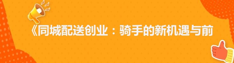 《同城配送创业:骑手的新机遇与前景展望》