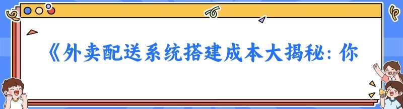 《外卖配送系统搭建成本大揭秘:你所不知道的那些事儿》