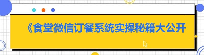 《食堂微信订餐系统实操秘籍大公开》