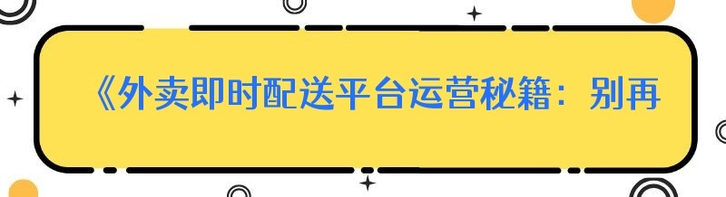 《外卖即时配送平台运营秘籍:别再走错第一步!》