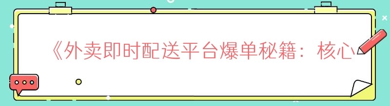 《外卖即时配送平台爆单秘籍:核心策略大揭秘》