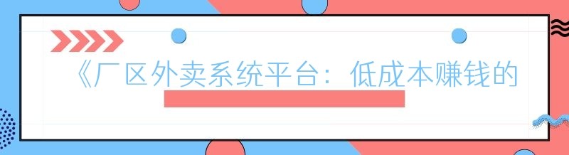 《厂区外卖系统平台:低成本赚钱的秘密武器》