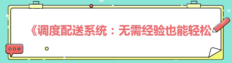 《调度配送系统:无需经验也能轻松驾驭的多场景服务利器》