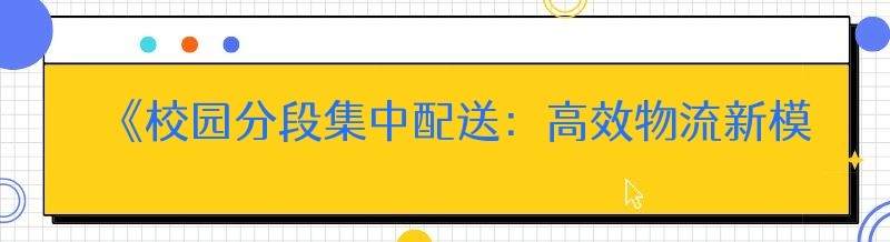在校园这个独特的环境中,人员密集、需求多样,物流配送一直是一个备受关注的问题。传统的配送方式往往存在效率低下、配送混乱等问题,而校园分段集中配送模式的出现,为解决这些问题提供了新的思路。那么,校园分段集中配送到底该怎么做呢?让我们一起来深入了解一下。