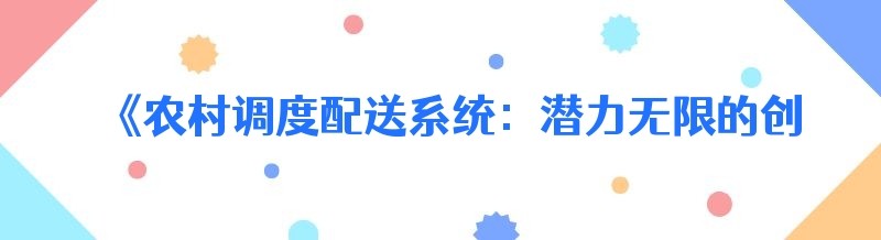 编辑 《农村调度配送系统:潜力无限的创业新蓝海》