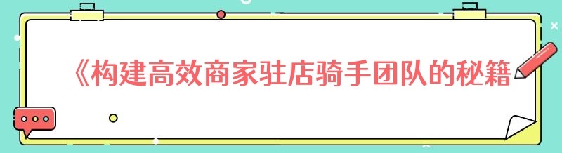 在当今竞争激烈的外卖市场中,拥有一支高效的商家驻店骑手团队对于商家来说至关重要。他们不仅直接影响着订单的配送速度和服务质量,还关系到顾客的满意度和商家的口碑。那么,如何才能打造出一支优秀的商家驻店骑手团队呢?下面就为大家详细介绍。