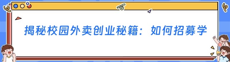 揭秘校园外卖创业秘籍:如何招募学生伙伴共创辉煌