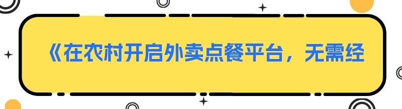 《在农村开启外卖点餐平台,无需经验也能轻松上手》