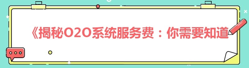 在当今数字化时代,O2O(Online to Offline)模式已经成为众多企业拓展业务、提升竞争力的重要手段。而O2O系统作为实现线上线下融合的关键工具,其服务费也成为了企业关注的焦点。那么,O2O系统服务费到底是多少呢?本文将为您深度解析。
