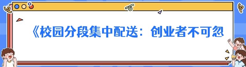 《校园分段集中配送:创业者不可忽视的潜力蓝海》