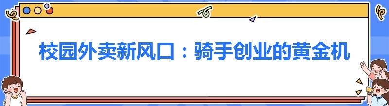 - 《校园外卖配送:独特优势与实用技巧大揭秘》