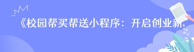 《校园帮买帮送小程序:开启创业新征程的金钥匙》
