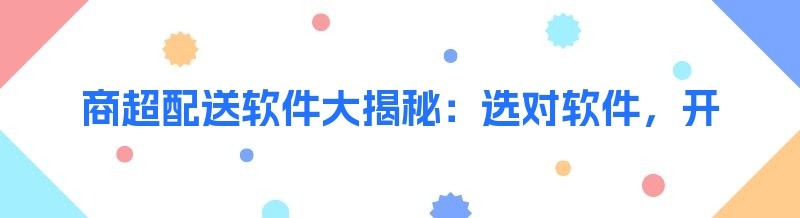 商超配送软件大揭秘:选对软件,开启高效配送新时代