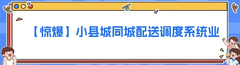 【惊爆】小县城同城配送调度系统业务,你还不知道就亏大啦!