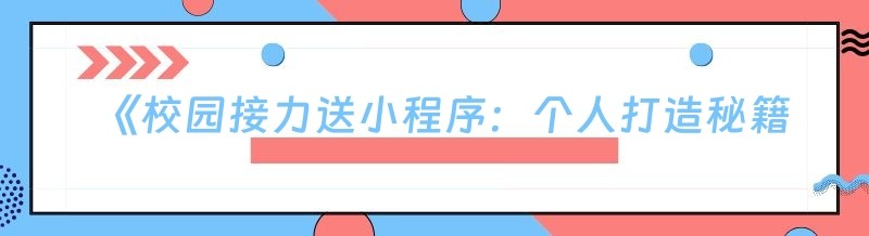 《校园接力送小程序:个人打造秘籍,核心策略大揭秘!》