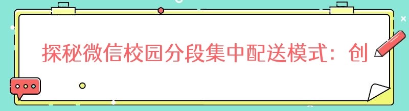 探秘微信校园分段集中配送模式:创新与高效的完美融合