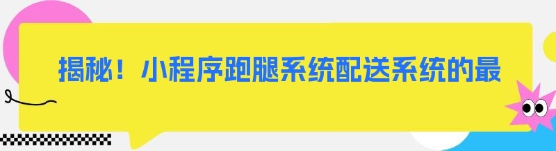 揭秘!小程序跑腿系统配送系统的最佳选择,90%的老板都不知道
