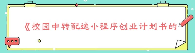 《校园中转配送小程序创业计划书的秘籍大公开》