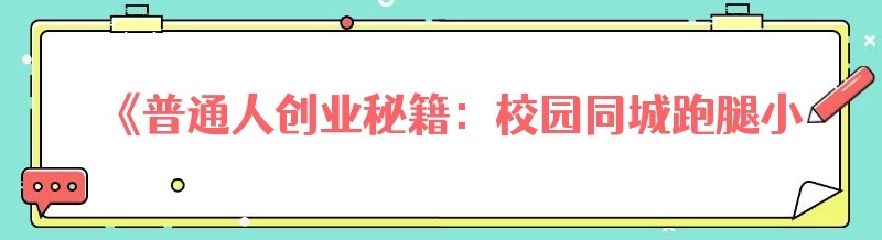 《普通人创业秘籍:校园同城跑腿小程序助力轻松起航》